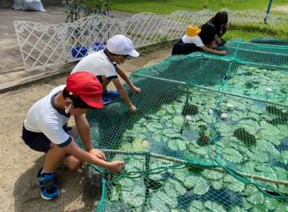 飼育栽培委員会の子どもたちと先生による、生き物ふれあい体験です。