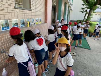 授業が終わった後、何人かの児童が「手、洗わんとあかんで」とお互いに声かけをしていました。意識の高い2年生です。