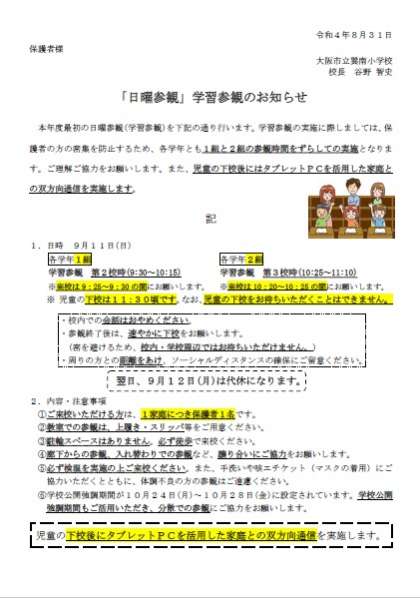 児童の下校後にタブレットPCを活用した家庭との双方向通信を実施します。