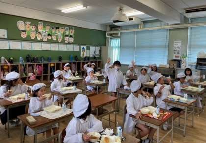 給食の時間に、2年生1組の教室をのぞくと、子どもたちが、笑顔で手を振ってくれました。嬉しいですね。