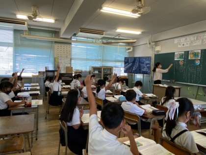 ちょうど、1限に地震に伴う避難訓練をした後なので、子どもたちは真剣に向き合っていました。