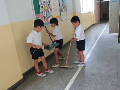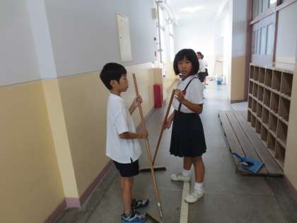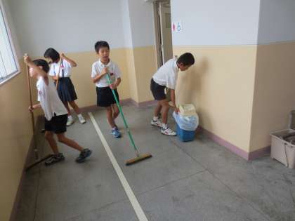 給食後の休憩時間のあとに「そうじ」があります。清掃時間は1時20分〜1時35分の短い時間ですが、子どもたちは真面目に取り組んでいます。一部ですが、「そうじ」の様子を紹介します。