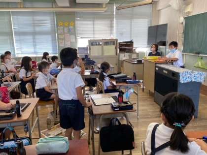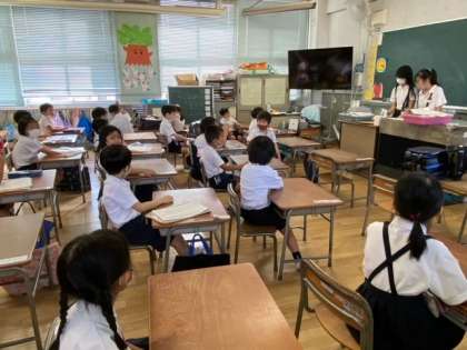 読書タイムの前に、「新聞・掲示委員会」の子どもたちが、各学級へインタビューに行きました。