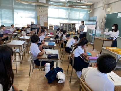 それぞれの学級で、「運動会で楽しみなこと、頑張りたいことは何ですか」と聞いていました。