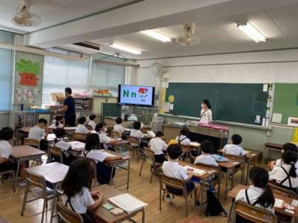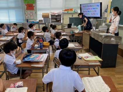 1年生の教室では、子どもたちが、アルファベットを一文字ずつしっかり発音していました。