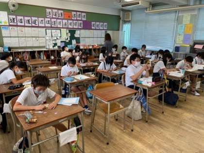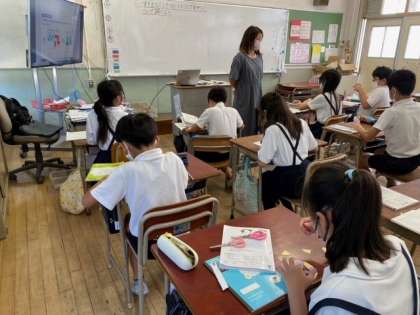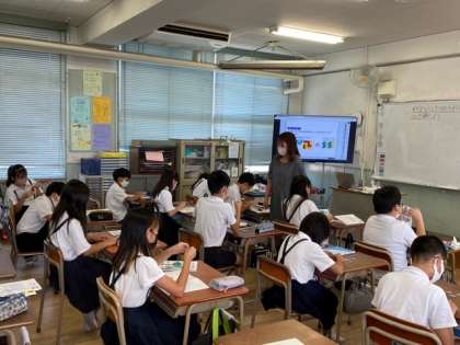 「すきまなく敷き詰められる四角形について調べよう」のめあてで、実際に切り抜いた四角形をもとに、図形の持つ不思議さや美しさを体感しました。