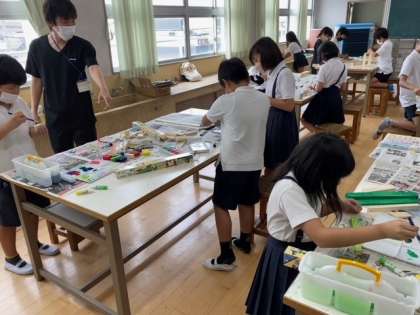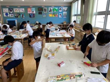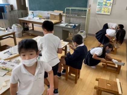 「ギコギコトントンクリエイター」という教材を使って、ペン立てやカレンダーなどを制作します。