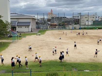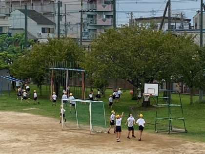 運動場では、子どもたちが気持ちよさそうに、思い思いに遊んでいます。