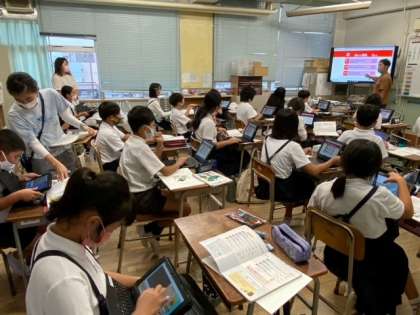 5年生1組の算数科で、子どもたちが「プログラミング」を体験しました。