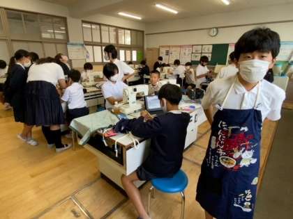 家庭科の「エプロンづくり」の続きです。