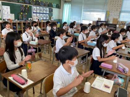 紙コップの動かし方や手のたたき方など複雑な動き(リズム)にもチャレンジしていました。