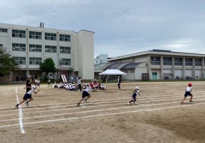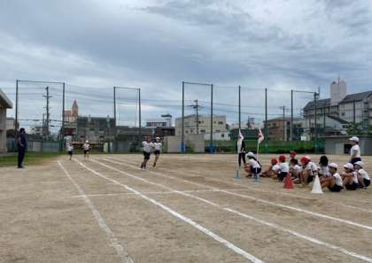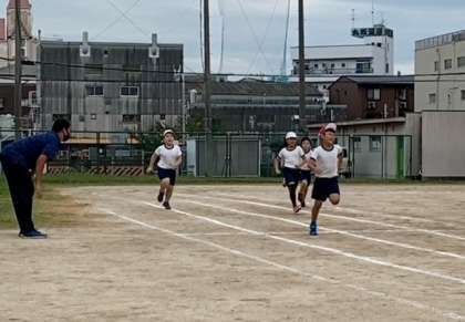 子どもたちが、笛の合図でスタートしました。全力疾走しています。