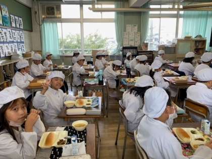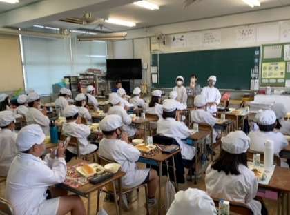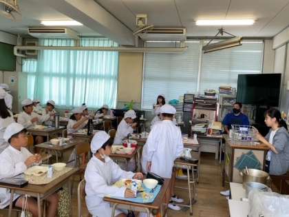2組では、子どもたちがインターンの大学生と一緒に食べていました。