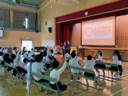 吉本興業から、漫才師「チャイルドプリンス」さんに来校していただき、5年生の子どもたちが、SDGsについて、楽しく学習しました。
