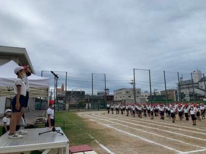 代表児童の指揮で運動会の歌を歌ったあと、校長先生の話を聞きました。