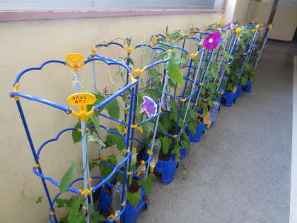 期末個人懇談会に来ていただいた保護者の方に、子どもたちが育てた「あさがお」を持って帰っていただきます。夏休み中、子どもさんと一緒に育ててください。