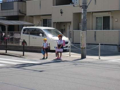 信号機を確認して、左右を確認して、安全に横断していました。低学年の児童がたくさんの荷物をもって下校していました。力強く歩いていました。声をかけると「だいじょうぶです」と言っていました。