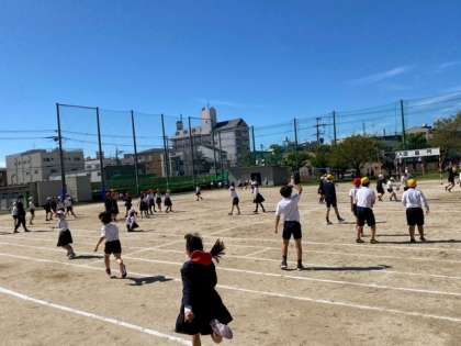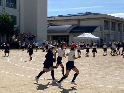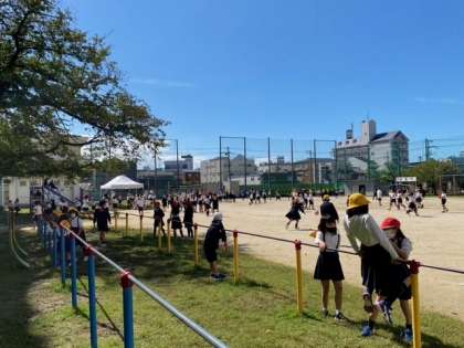 運動場は子どもたちで賑わっています。
