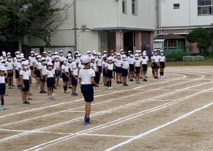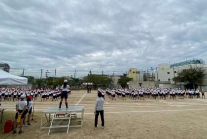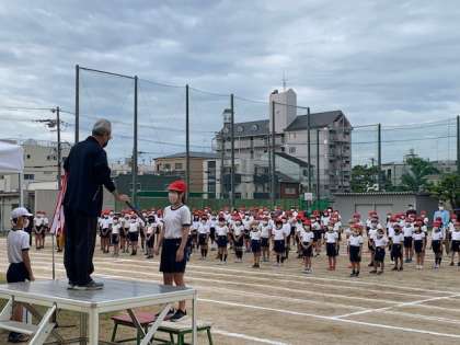 校長先生の話のあと、代表児童の指揮で校歌を斉唱しました。