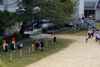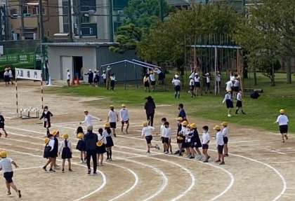 運動場いっぱい、子どもたちの歓声が広がっています。