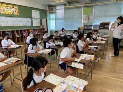 1組の道徳科では、50周年を迎えた巽南小学校へのお祝いのメッセージを考えました。