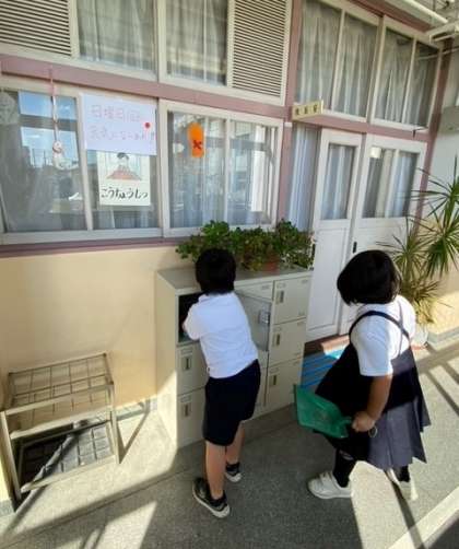 毎日、1年生の子どもたちが、校長室・職員室前を「きれいきれい」にしてくれます。