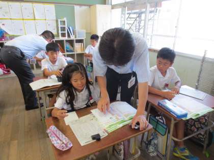 一人一人に優しく声をかけ、巡回指導を丁寧にしていただきました。子どもたちは声かけで自信をもち書き上げていました。