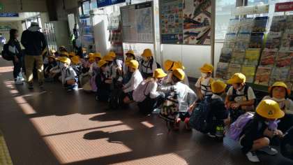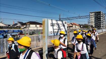 平野駅から電車に乗ります。新今宮駅で乗り換えて浜寺公園駅に着きました。
