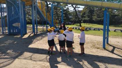 子どもたちが、遊具で楽しく遊んでいます。