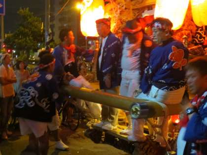 巽南地域の方々や子どもたちも協力して、巽神社に神輿が到着しました。力強く、多くの方々が協力している姿に感動しました。