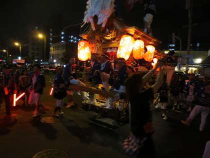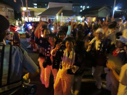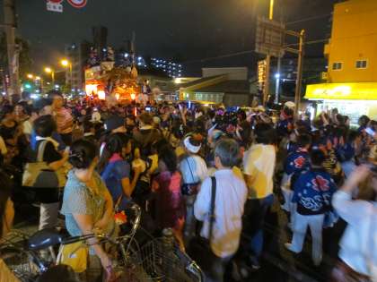 歴史ある四条の神輿が巽神社に入るところです。(7/15)多くの人々が拍手と声援で迎えていました。
