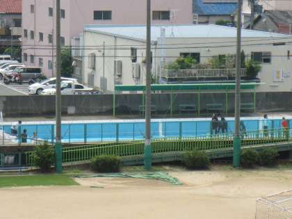 7月21日(火)からのプール開放がはじまります。職員作業でプールを清掃をしています。週明けには、プールにきれいな水が満タンになっています。