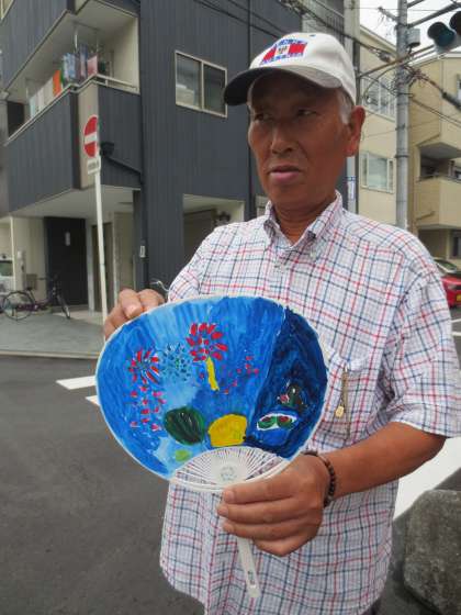 児童が作った手作りうちわを、地域の方が持っておられました。大変喜んでいただけていたので嬉しかったです。