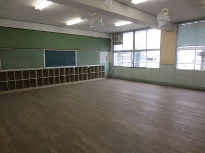 何もなくなった教室です。3年・4年の児童は、8月29日(土)の親子全校清掃より、上履で教室に入って下さい。また、上履きのご準備もよろしくお願いいたします。