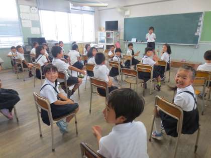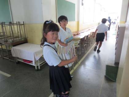 学習教材などは教具室へ移動しています。ピカピカの床の教室で学習ができるので、子どもたちは嬉しそうでした。