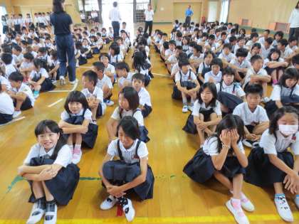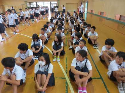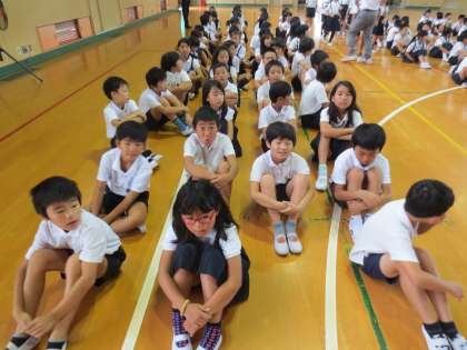 終業式前、静かに待っている6年生・5年生・4年生の様子です。