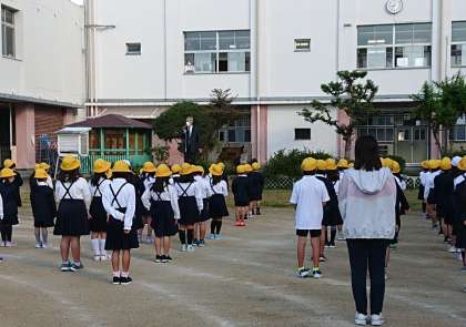 校長先生からは、「先週から始まった遠足(校外学習)」と「来月5日の式典」についての話がありました。