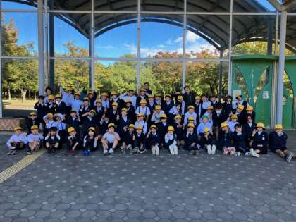 遠足の記念に 学年で写真を撮りました。