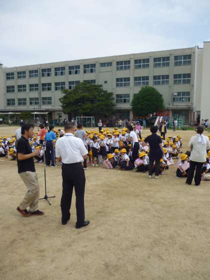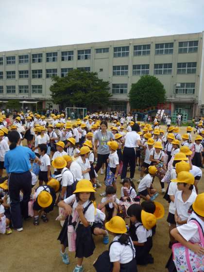 大地震のあとに、余震があったということを想定して、教室から避難しました。