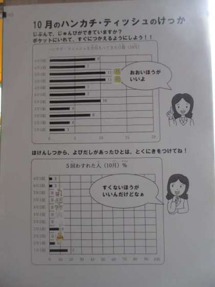 玄関には、10月のハンカチティッシュ結果のグラフを掲示しています。