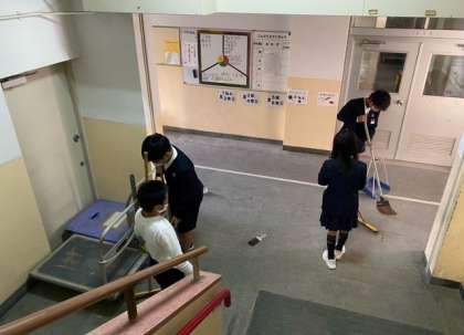 5年生の児童が、教職員と一緒に明日の式典にむけて、清掃など 準備を手伝ってくれました。