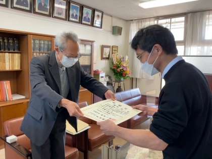 教育委員会よりお預かりしていました表彰状を、校長室にてお渡ししました。
