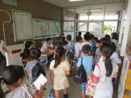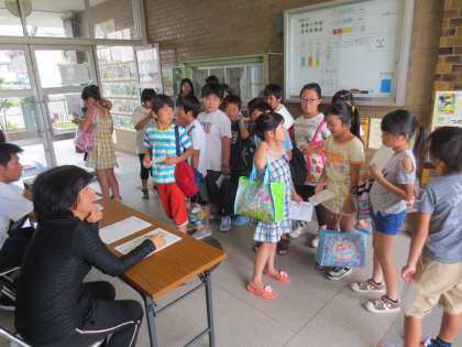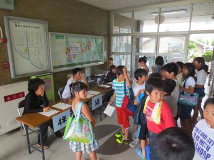 時間前に玄関の受付に集まっています。たくさん集まっていましたが・・どの子もよく理解していて、受付をスムーズにすませていました。