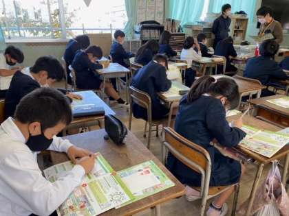 日本郵便PFCアドバイザー及び生野郵便局の方に来ていただき、4年生の子どもたちが「手紙の書き方」を学習しました。
