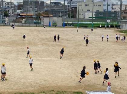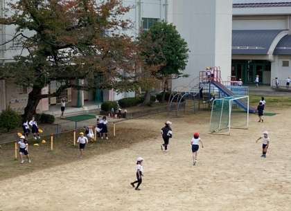 休み時間には、子どもたちが、元気よく運動場を走り回っています。
