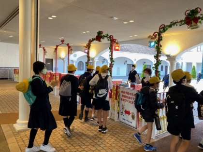 先生から集合時刻などの注意点を聞いてから、いよいよ志摩スペイン村に入場します。