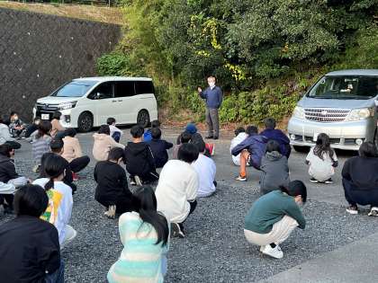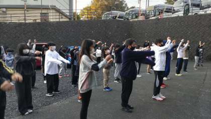 少し眠そうですが、みんな朝のラジオ体操をしています。