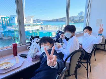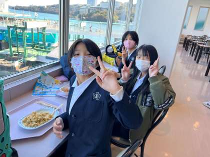 鳥羽水族館では班ごとに、時間を決めて食事をします。