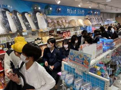 鳥羽水族館でもおみやげを見ています。