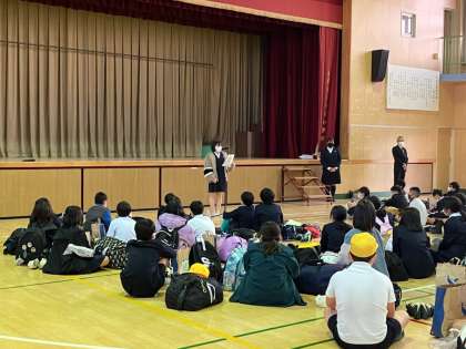さぁ、学校へ着いたらすぐに帰校式です。2日間を振り返り、修学旅行のまとめを行いました。